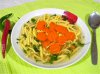 Pieptul de pui se pune la fiert impreuna cu ceapa alba lasata intreaga. Ceapa verde se taie rondele,ardeiul gras cubulete iar morcovul felii subtiri,se pun la calit in ulei de masline,adaugand si...