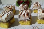 Pentru blat, separam albusurile de galbenusuri si presaram cate putina sare peste ele. Mixam albusurile spuma, apoi adaugam treptat zaharul si zeama de lamaie. Trebuie sa obtinem o bezea tare care va ramane fixata pe peretii bolului, daca incercam sa-l intoarcem cu susul in jos. Scoatem...