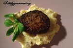 Medalion de vită în crustă de piper pe norişor de écrasé de cartofi cu ceapă caramelizată