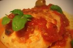 Piept de pui fript cu sos de roșii și măsline verzi