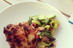 Pulpe de pui picante cu salsa de rubarbă și castravete