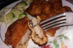Se taie pieptul de pui in fasii subtiri. Galbenusul de ou se amesteca cu 2 linguri de faina si sarea , se adauga albusul batut spuma si se mai adauaga 1 lingura de faina, sau cat mai trebuie pentru a se ingrosa. Fasiile de carne se trec prin pasta de ou si se pun in tigaie in uleiul incins....