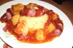 Mancare cu carnati afumati si mamaliguta