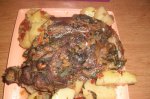 Se pune carnea de iepure la fiert pana cand da in clocot. Cand este gata, se pune intr-o tava carnea de iepure, cartofii taiati, usturoiul taiat marunt, bulion si apa si se da la cuptrul preincalzit pentru inca 50 de minute sau pana cand carnea de iepure si cartofii sunt facuti. Se adauga...