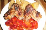 Aripioare de pui la cuptor cu salata de ardei copti