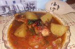 Mai intai taiem pulpele in doua si taiem ceapa rondele, iar cartofii cuburi. Punem ceapa si pulpele in ulei incins la calit si le lasam 5-6 minute, nu foarte mult, sa nu se rumeneasca. Adaugam 1 cana de apa, pasta de tomate, cartofii, sare si piper si dam la cuptor pentru 50-60 de minute....