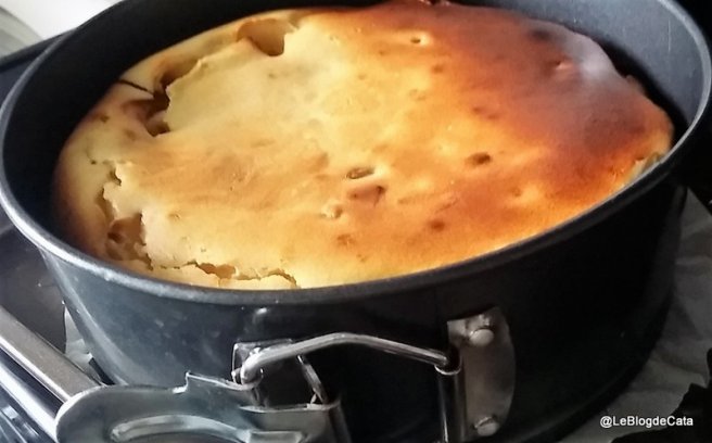 Desert budinca cu branza, mere caramelizate si stafide-3