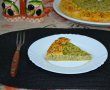 Introduci tava in cuptor, pentru 40-45 de minute, pana cand se rumeneste frumos. Lasi sa se racoreasca putin tarta si o servesti.